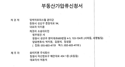 mk오피스텔 지하주차장 하자에 관한 부동산 가압류 신청서입니다.